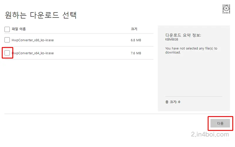 - 64bit이면 → HwpConverter_x64_ko-kr.exe를 선택하고