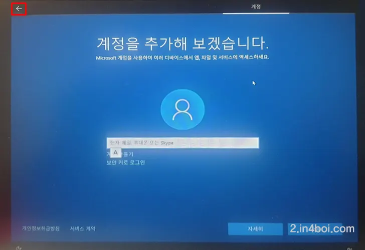 1. 윈도우10 설치 시 계정을 추가하는 단계에 와 있는 경우 2글자 이상의 아무 내용이나 입력합니다.
